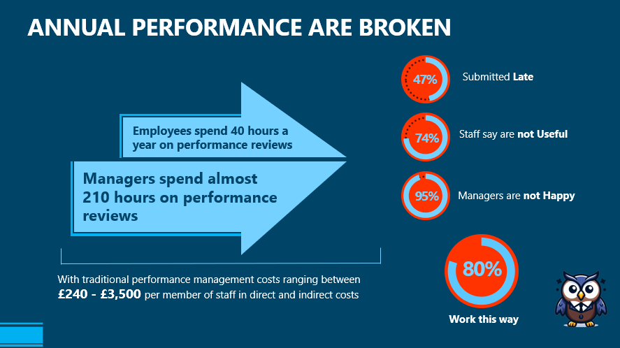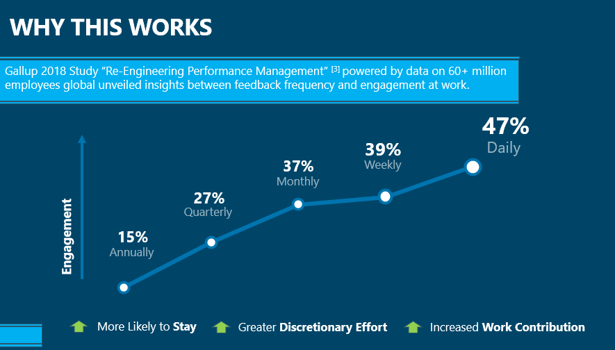 Visualizations to show improvements in employee performance and feedback quality over time allow for easy reporting.